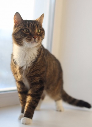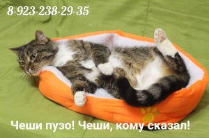Симпатичный мужчина в полосатом костюме и белых перчатках - такой окрас никогда не выходит "из моды"! Испокон веков именно полосатики были популярны среди народа. Так почему же по Лансу нет ни звоночка? Умён, благодарен, общителен и порой навязчив - очень харизматичный и яркий кот с хрипловатым голосом и громким басом. Довольно крупный по размерам - весит больше 5 кг и это для Лансика не предел! На ручках любит сидеть, когда сам этого захочет (чаще всего любит взгромождаться на коленки, когда надо отвлечь человека от работы за компьютером). Кастрирован, питается сухим кормом. Избавлен от паразитов. Лоток на 5. В отношениях с другими кошками очень уступчив, готов отдать свою миску другу). Быстро адаптируется в любой новой обстановке (лишь бы вкусненьким задобрили)
