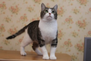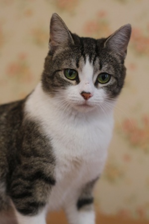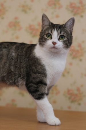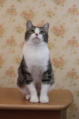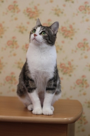 Таша – молодая, воспитанная, уверенная в себе и очень общительная кошечка. Она ласковая, добрая, умная, и к тому же настоящая красотка: крупная, холеная, с нежной шерсткой и яркими зелеными глазами. Ее мягкая шубка восхищает изяществом – на Таше словно надето белоснежное платье с паласатым жакетом и белоснежные перчатки. Стоит только этим грациозным лапкам запрыгнуть к Вам на колени - тут же послышится довольное урчание.