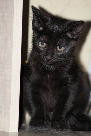 Пристраивается с квартирной передержки вот такая маленькая красавица! Блестящая, гладенькая брюнеточка с белым пятнышком на груди, 3-х месяцев от роду. Безумно обаятельный и непосредственный ребенок, игривый и потешный. На фото Тося только приехала во временный дом из подъезда, куда ее подбросили плодильщики, поэтому она кажется грустной. Сейчас девочка оттаяла и заметно повеселела. Прекрасно ладит со всеми – с людьми, кошками и собаками. Очень ласковая, любит сидеть на ручках и петь песенки. Здоровенькая, чистенькая, проглистогонена, готовится к первой прививке. Ходит в лоточек с селикагелевым наполнителем. Кушает сухой и влажный кошачий корм.