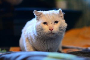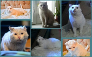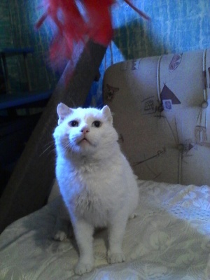 Белоснежный кот с пронзительно голубыми глазами. Чем он не угодил хозяевам неизвестно, но его бросили на даче. По потрепанной шубке видно, что выживал Беляш в таких условиях с большим трудом. Ушки отморожены, мордочка в рубцах - видимо боролся за место с другими котами. Первые дни в приюте никак не мог наесться. Сьедал сразу три пакетика влажника, до блеска вылизывал мисочку и собирал все крошки вокруг. Не мог поверить, что еда теперь будет всегда и два раза в день. При очень брутальный внешности, Беляш нежный, ласковый и робкий мальчик. Тихо мурлыкает когда его гладят, подставляет шейку и прижимается покрепче. С удивлением для самого себя открыл мир игрушек и развлечений, до изнеможения гоняет шарики, мячики, бантики, носится за перышками на "удочке". С другими кошками дружелюбен и сдержан. Возраст 2 года, кастрирован, привит, лоточек на 5! Отдаётся только в ответственные и любящие руки, один раз и на всю его кошачью жизнь!