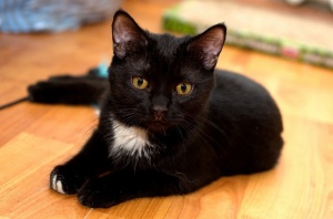 Ищем дом вот такому юному франту с очевидным именем Черныш! Сейчас ему 5 месяцев. Котенок здоров, неприхотлив в еде и безошибочно попадает в лоток (с любым наполнителем). С другими кошками отлично, будет только рад товарищу по играм. Бесстрашный, активный, ласковый, общительный, мега-позитивный парень, никого и ничего не боится и готов носиться целый день, но! при этом любит сидеть на руках и мурчать.