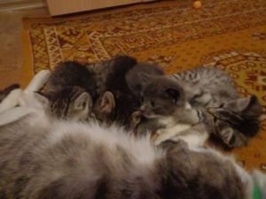 котята девочки, пять недель, три серых полосатика (одна потемнее) и серая кошечка с белыми лапками и пузиком ищут хозяев. мама - кошка с шелковистой шерсткой, мышеловка и крысоловка в отслеженном четвертом поколении. Наверное, и детки вырастут не сильно лохматыми и хорошими охотниками. активные, крупные, играют мячиками и шуршалкими, мурчат, едят прикорм Екатерина 9538650235 liskasya@mail@ru