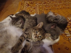 серенькая красуля с белыми носочками и одна из двойняшек нашли добрых хозяев!!