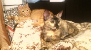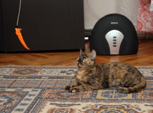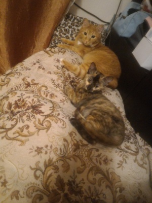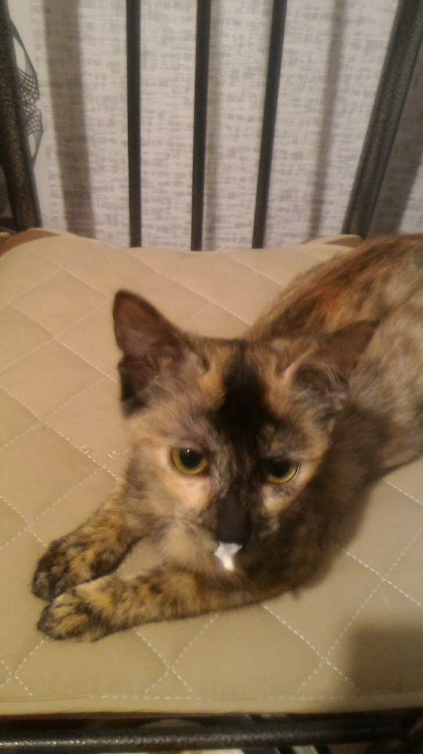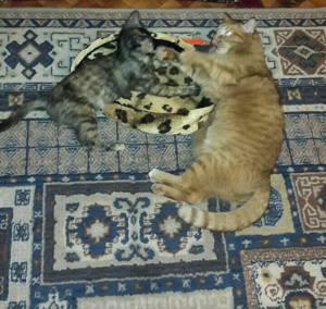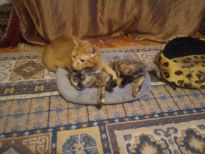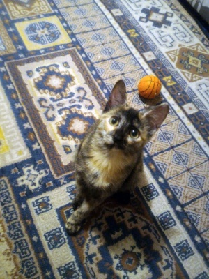 Кошечка очень дружелюбная, покорила )))) двух взрослых котов, они теперь ей уступают еду и свои спальные места)