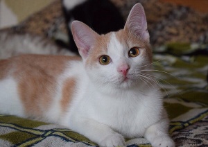 Бело-рыжий ласкуша и озорник, котик-подросток Степашка
