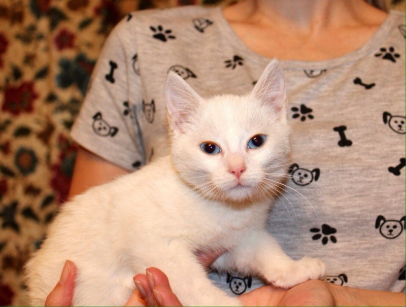 Миниатюрные белоснежные красавицы были найдены в подвале, куда их кто-то подбросил, избавляясь от потомства своей домашней кошки. Этот ужасный поступок почти обрек котят на гибель - сестренки заболели кальцивирозом. К счастью, девочек вовремя забрали в тепло, пролечили, обработали от паразитов. И теперь малышки здоровы и полностью готовы к переезду в новые любящие "ручки", к маме и папе под бочок))