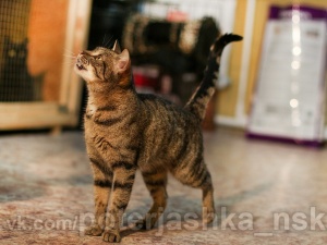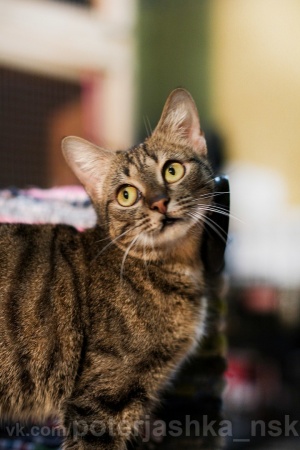 Черемуха, очень милая молодая стерилизованная полосатая киса
