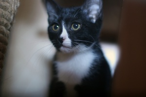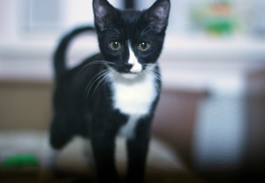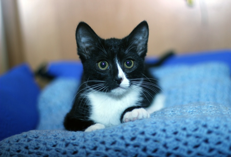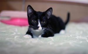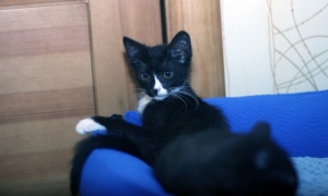 Котёнок-девочка чёрно-белого окраса, 2 мес