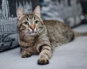 Очень ласковый, спокойный, обожает погладужки пузика, быстро подружился с моими кошками. Обожает спать в постелях))) Возраст около 2 лет.