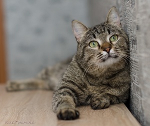 Интеллигентный котик, уступает место у мисочки и на диване девочкам-кошечкам.