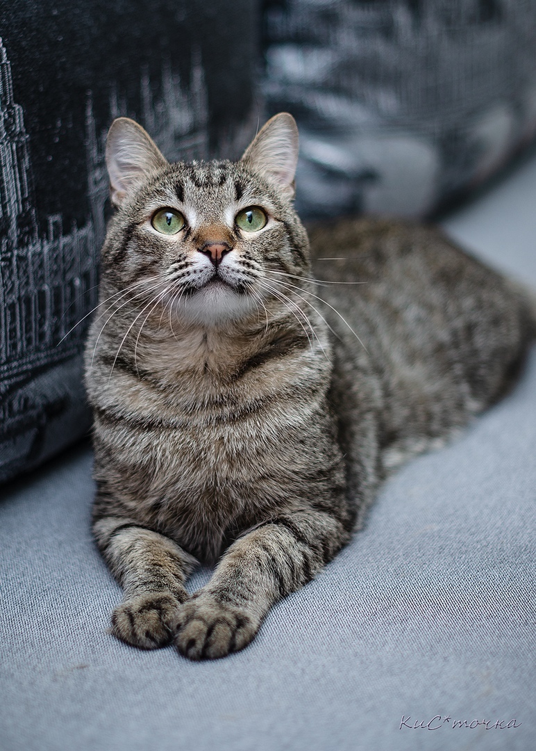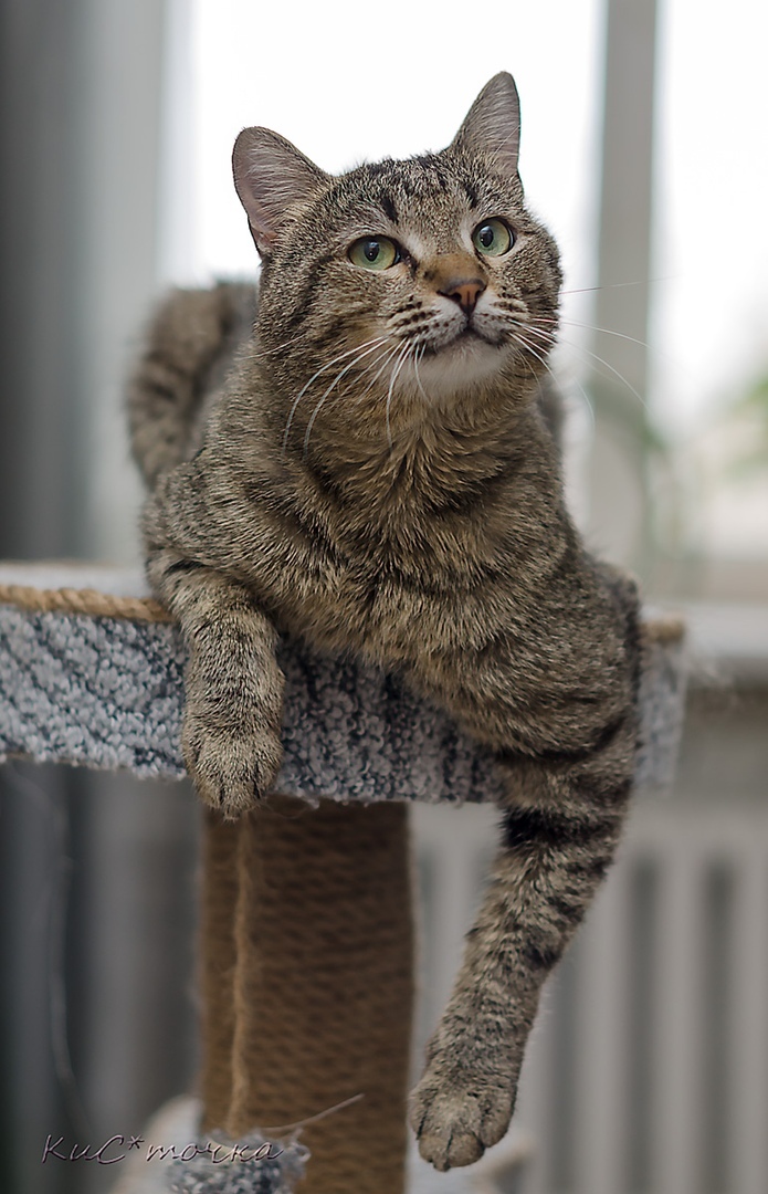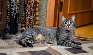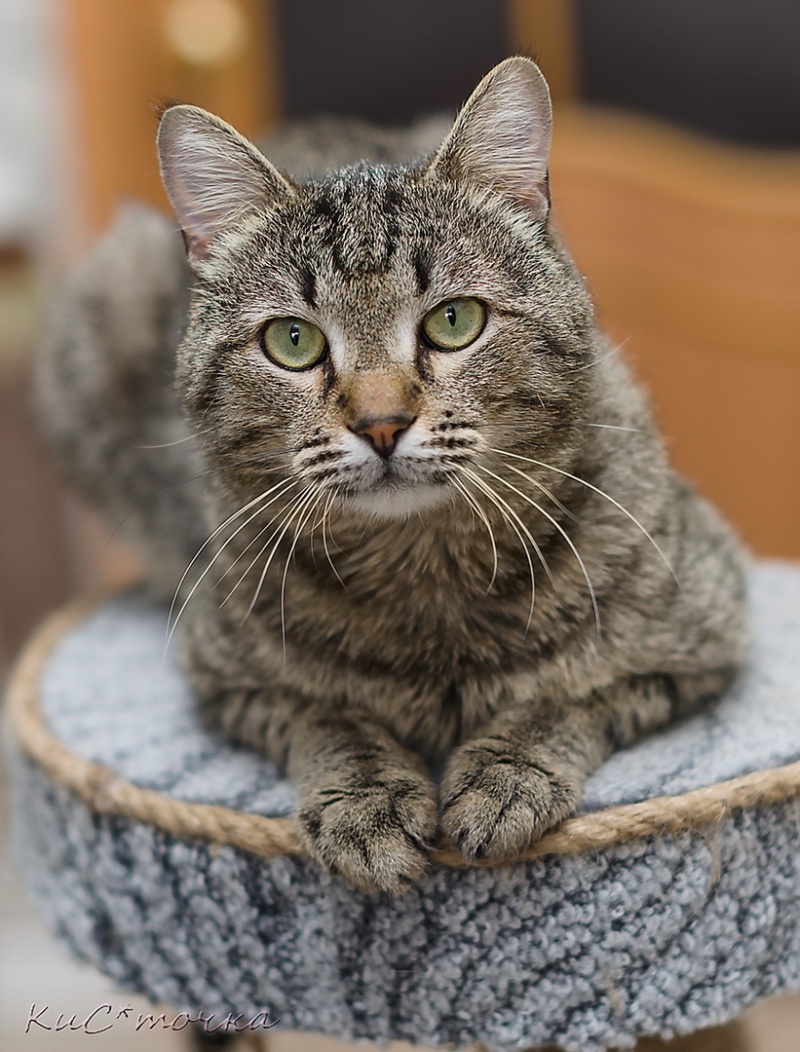 Очень спокойный котик. Любит прийти погладиться, сесть на ручки, тихонечко помурчать песенку.