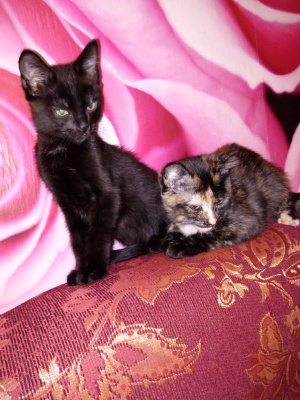 Мальчик - черненький с белым пятнышком на пузике, девочка - классическая черепашка. Оба гладкошерстные.
