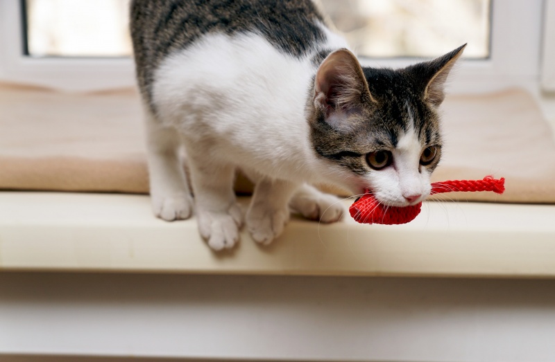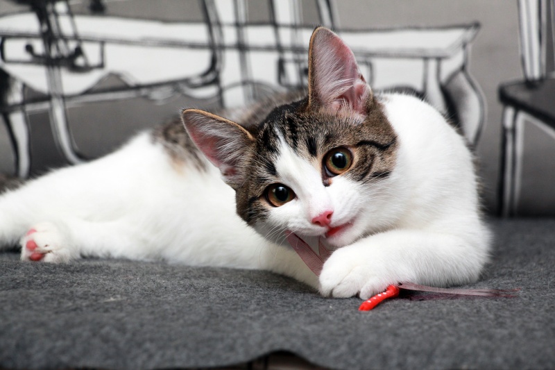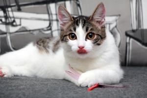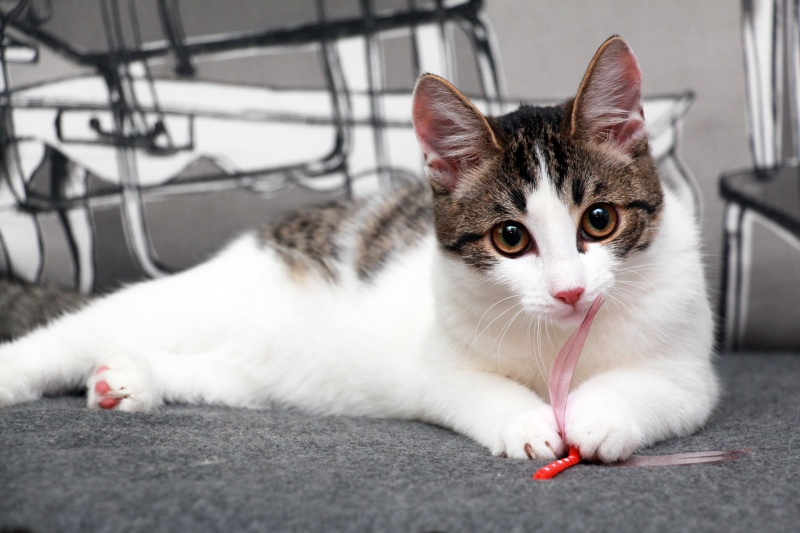 Алина очень игривая, носит игрушечную мышку в зубах, прячет в домик, потом достает, опять гоняет ее по комнате. Очень нежная и ласковая девочка, чуть руку протягиваешь в ее сторону, как она уже мурлыкает.