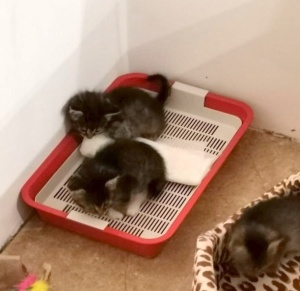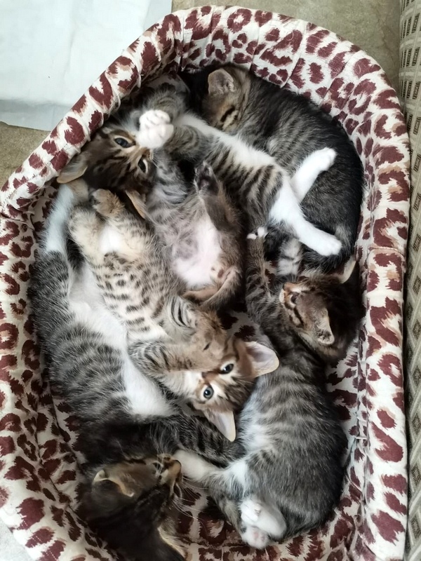 Сейчас они уже вполне освоили лоточек, начали кушать сухой корм, но иногда ещё сосут мамино молочко. Как только раздадим котят, маму стерилизуем. Малышей тоже раздаём на условии стерилизации (поможем, подскажем)