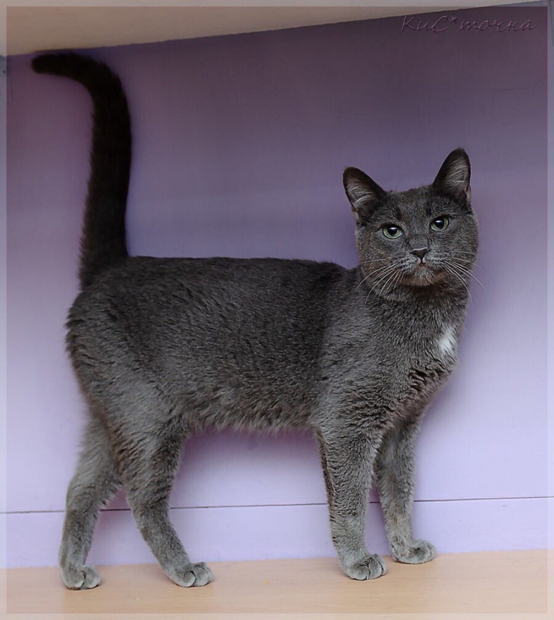 В приюте он недавно, поэтому пока ещё побаивается и людей, и новой обстановки, но если он попадёт в хорошую, любящую семью, то освоится быстро. А потенциал у него есть: он очень любит ласку, подставляет головушку, чтоб погладили и почесали за ушком. Редко он в своей жизни получал ласку, вот и не верит пока в своё счастье!