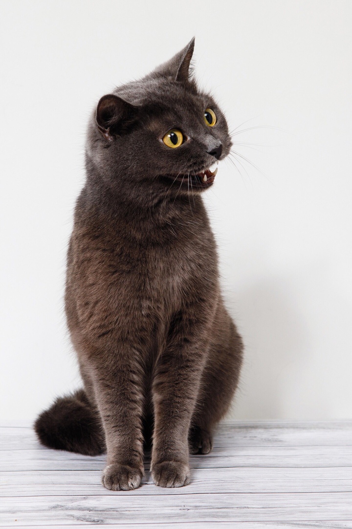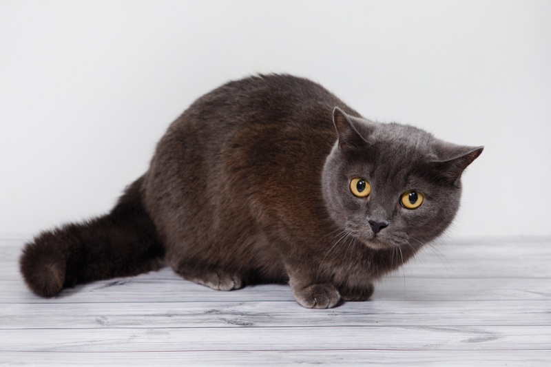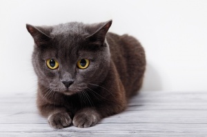 А вообще, кошечка чудесная. Очень красивая, в набивной голубой шубке, с большими апельсиновыми глазками, круглой щекастой мордашкой. Прелестное создание.