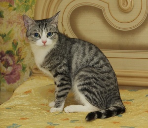 Кошка возрастом около 1-2 года, ходит без промаха в лоток с древесным наполнителем, кушает сухой корм и влажнички, стерилизована, обработана от паразитов.