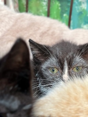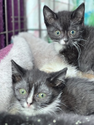 Дети хорошие, умненькие, освоили лоток, научились самостоятельно кушать. Возраст 1,5 месяца. Весь день спять и играют. Правда, места для игр совсем мало. А им бы побегать за мячиком по просторной квартире...