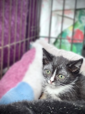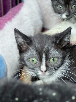 На фото у них испуганные мордашки, потому что они не ждали, что кто-то направит на них вспышку фотоаппарата. А без вспышки их не сфотографировать, дети живёт в тёмной комнатке, в клетке. Приют переполнен и другого места для малышей нет. Зато тепло и безопасно.