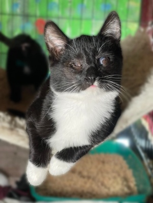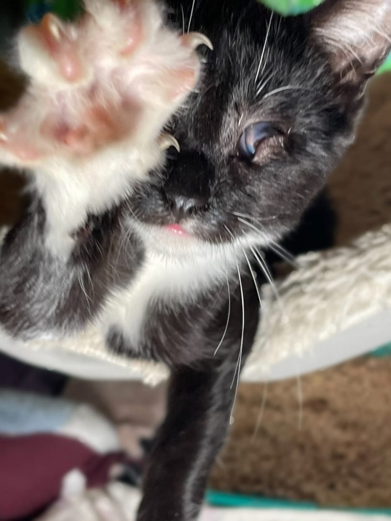 Но он оптимист и отлично себя чувствует и без зрения. Играет, ходит в лоток, отлично кушает и прекрасно контактирует с сородичами. Очень нежный, ранимый, ласковый ребёнок.