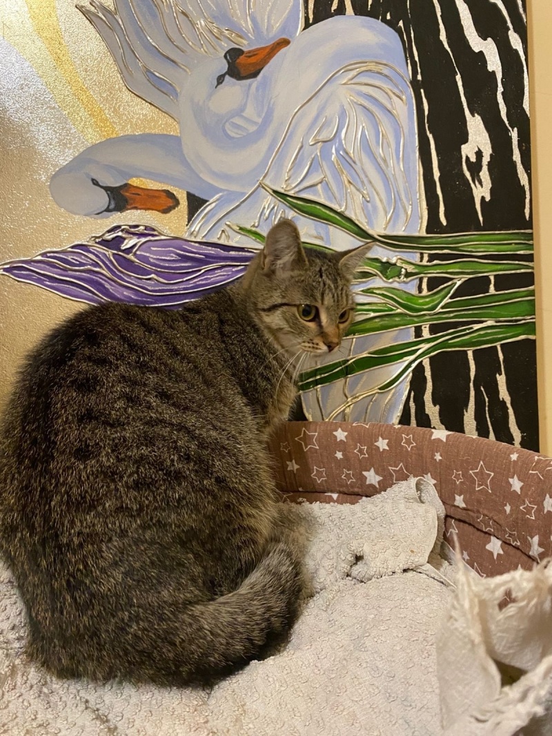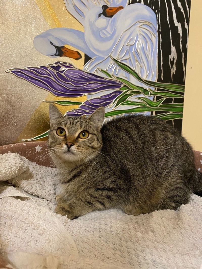 Уютная кошечка-подросток Сара. Как все кошки такого окраса, очень дружелюбная к людям и другим кошкам. Но на незнакомую кошку для приличия сначала пошипит, чтоб та понимала, Сара умеет отстаивать личные границы)
