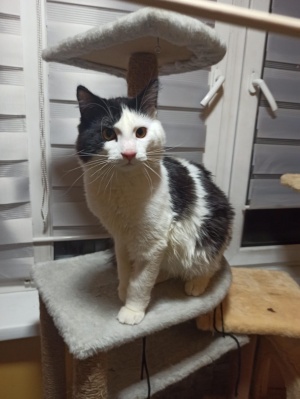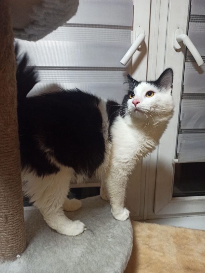 Молодой, примерно 10 месяцев, кастрирован, привит, проверен на все вирусные заболевания, кот здоров.