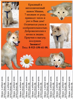 А Мишка безумно красивый щен, я в него влюблена. Хороших ему хозяев.