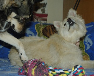 Он еще ребятенок пытается с кошками играть и с собаками дружелюбен.
