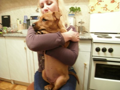 Да вообщем ничего не могу сказать - просто не знаю.Щенок находится у знакомых ЮЛИ - это они увидели как пьяный хозяин запинывал буквально его и вызвали милицию.Хозяина забрали а щенка отдали им. Врачу щенка не показывали,повреждений вроде нет,ест с аппетитом,играет! Всё сгрыз!