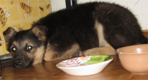 Щенику на самом деле чуть больше, где-то 1,5 месяца, девочка не слабая вырастет где-то с овчарку, да и внешне есть в ней овчарочьи крови