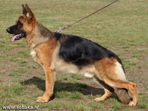 Это немецкая овчарка. У них линия спины скошена вниз (как у Вашей), у восточно-европейских овчарок спина прямая. Да и окрас у них другой.