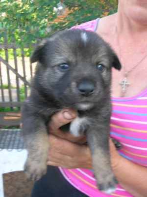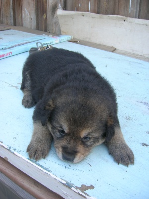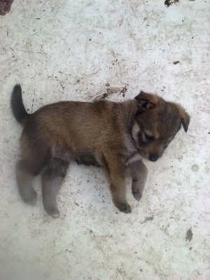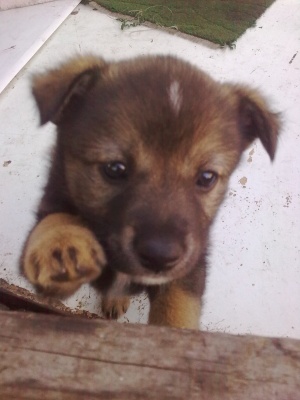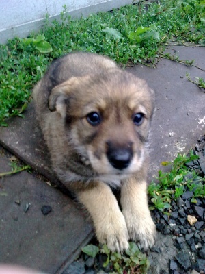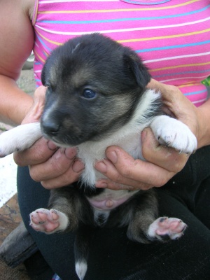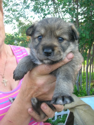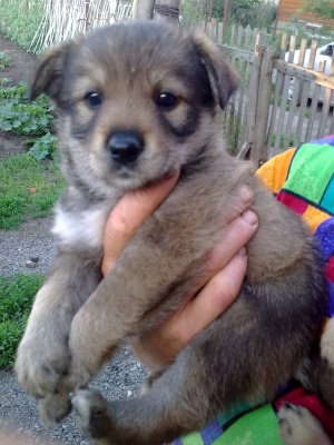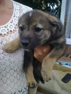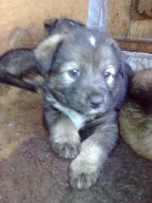 Нашу собаку мы взяли из приюта, очень умная девочка - помесь овчарки с дворняжкой. Месяц назад она родила пятерых очаровательных пушистиков, папа - тоже помесь с овчаркой, более выраженная.
