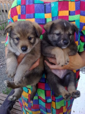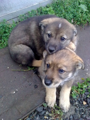 Мы все еще ждем своих новых любящих хозяев. Две девочки, скоро 2 мес. Одна крупная, вторая поменьше. Очень умные собаки, уже вовсю охраняют нашу дачу и гавкают на всех проходящих...))) Обе здоровые и толстенькие)))