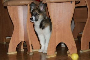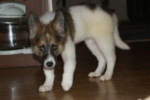 Этот забавный малыш сейчас у нас, мы вчера забрали его с передержки в Барлаке, чтобы сегодня вечером показать потенциальным хозяевам. Помыли его ,расчесали - такой нарядный стал , пушистый ))) Хвостик загибается как у лайки, такой же шустрый, с первого раза понял что ходить надо на газетку , вобщем смышленый малый !