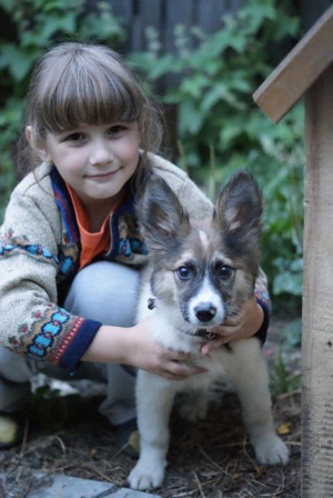 ВОт и повезло ! Отвезли малыша в свой новый дом, семью с ребенком 7 лет,Маргаритой, которой щенок очень понравился, он полизал ее и дал надеть на себя новенький ошейник. Потом залез в новенькую конуру, и почувствовал себя дома - блин как приятно это все видеть, зная ,что было если бы не....... вовремя остановленный Оксаной отлов и забранный пакет с полуживыми щенками.... Судьба какая ) Хорошая все-таки !