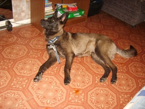 <br />Овчароид, среднего или немного больше среднего размера (уровень спины немного выше моего колена), симпатичный, основной окрас бурый, а мордочка, уши, лапы до колена и хвост - черные. Уши - стоят, хвост - кверху. Отлично ладит с детьми. В квартире спокоен, ничего не грызет, "по делам" ходит только на улице. Спокойно ходит рядом на поводке и без поводка. Очень предан. Если возьмете, будет ходить за Вами как привязанный. Все его поведение говорит о том, что он был домашним. Хотя и недолгая, жизнь на улице сделала слегка пугливым, но при этом он готов охранять Вас от всех. Если ему покажется, что кто-то к Вам агрессивен, будет рычать, лаять, рваться, но если громко сказать "нельзя!", слушается сразу, ведет себя спокойно. Прекрасно ладит с другими собаками.