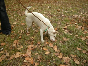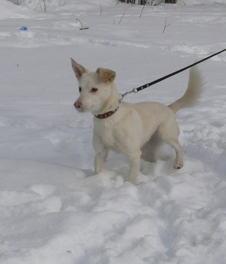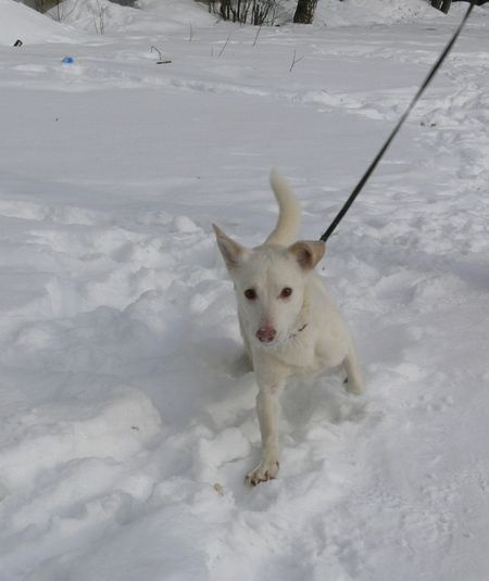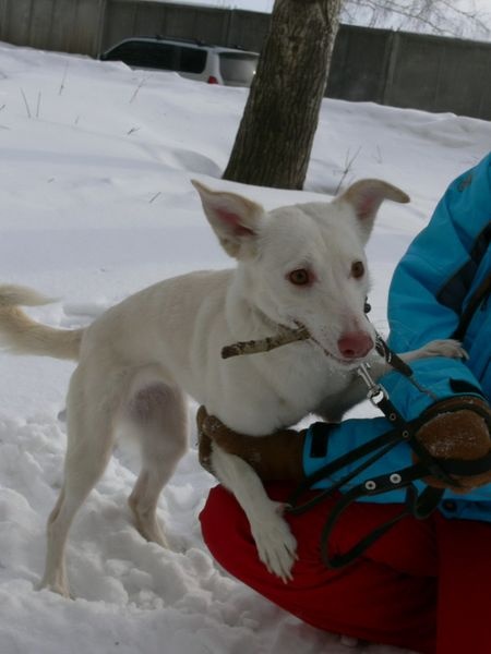 Сегодня ездила в гости к Белке. Она так радуется, когда я приезжаю - как ребенок. Облизывает мне руки, утыкается в них своим розовым теплым носом. Сейчас у Белочки есть сосед, шабутной мальчишка - щенок, с которым они вместе живут, играют в игрушки. Также с ними живет красивая кошка. Поэтому, Бельчонок очень дружелюбная девочка. Белочка такая игручая. Особенно любит прыгать за палочкой или за мячиком. Она очень хочет дарить тепло, нежность и преданность своим хозяевам, которых очень ждет. Как всякий ребенок, она хочет в любящую и заботливую семью и верит, что найдутся люди, которые подарят ей сказку - теплый дом и заботу.