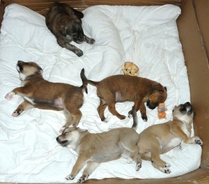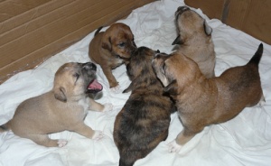 Домашняя собака 19-го октября 2010 г. родила пять очаровательных щеночков (2 мальчика и 3 девочки). Карапузы скоро будут готовы переехать к своим хозяевам в квартиру (для улицы шерстка коротковата). Будут среднего размера (мама 50 см. в холке и папа примерно такой же). Девочки тигрового, песочного и рыжего с затемнением на спине окрасов. Мальчики - палевый с черной маской и тигровый (с редкими черными полосами). У всех щенков небольшие белые отметины. Тел. для связи (923)242-восемь четыре- две шестерки.