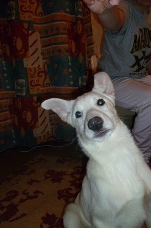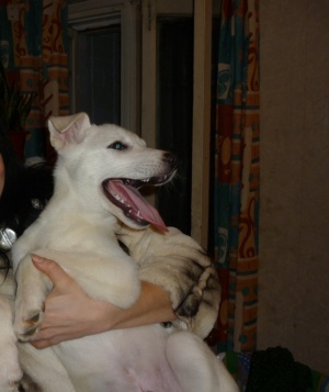 Ребята,пёс просто сууууууууууперский!А какой у него жирок под кожей!!!Он практически белый межвежонок!!!Его так приятно брать на руки!!!Он очень подвижный и игручий!Это просто чудо расчудесное!А ещё он Найта моего залюбил...