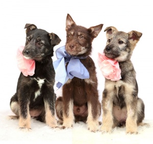 А вот Чоко и две его красавицы сестрички ещё ждут самых-самых замечательных хозяев. У Багирочки ушки тоже встали и она стала похожа на мини-овчарочку