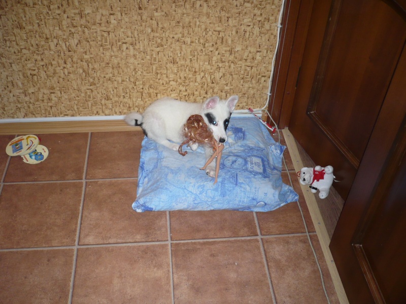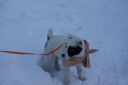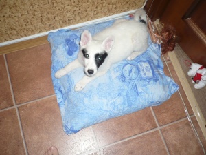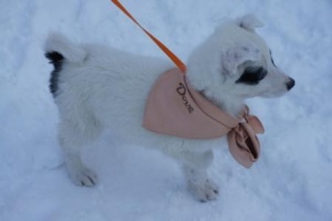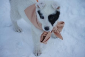 Девочка очень смешная и смышленая. Ходит в туалет на газетку и улицу. Примерно ей 2 месяца. Скоро будет поставлена первая прививка. Бегает за моим котом, но не трогает:) Все в нее влюблены по уши просто. Хвост крючком. Пушистая. Есть пятнышки на лапках, как у далматинца. Зову ее Умка-колобок) Откликается на второе слово)