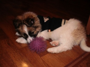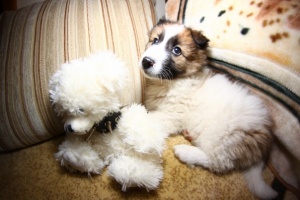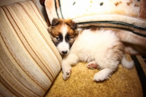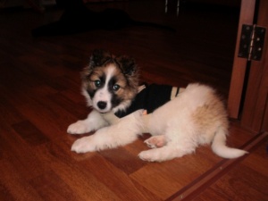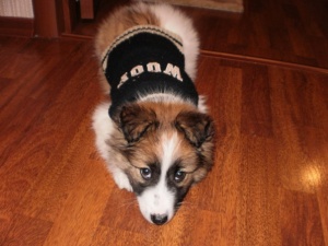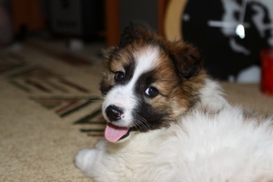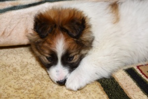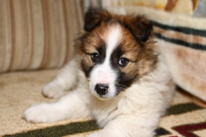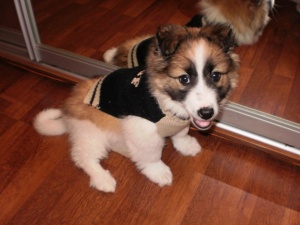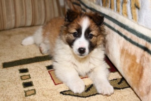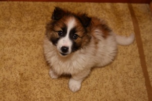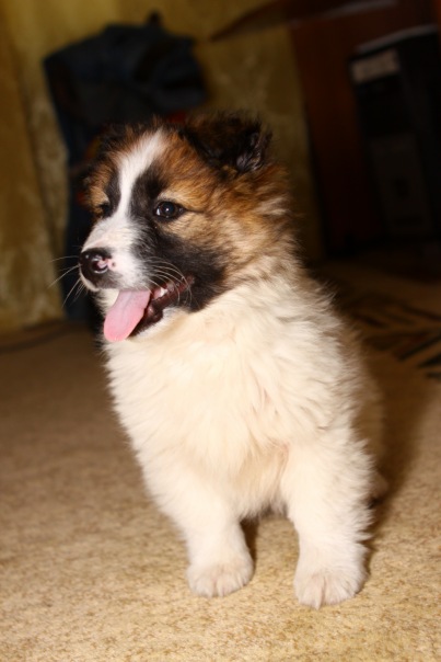 Мальчик Айк, возраст около 3 месяцев. Будет чуть выше спаниеля(так сказали в ветеринарке) Здоровый мальчишка) Очень умный.. сразу пошел в туалет на пеленку. Пушистый. Характер плюшевый)