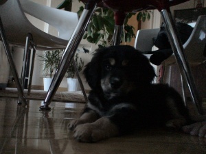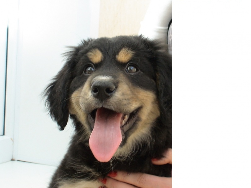 Не балованный щенок, очень любит общение и дружелюбно относится к кошкам.
