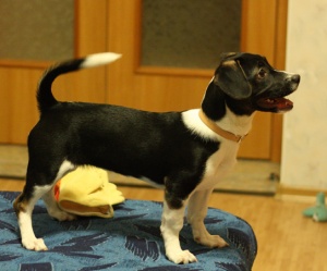 Наша девочка немного подросла за месяц, рост в холке у нас 28 см, длина тела 50 см, вес 7.5 кг. Кому 7.5 кг неуёмной жизнерадостности?