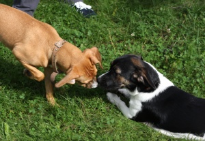 ну ты где, хозяин! негоже такой собаке саму себя веселить! ей компания нужна!