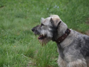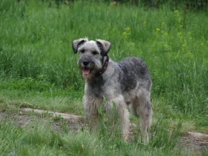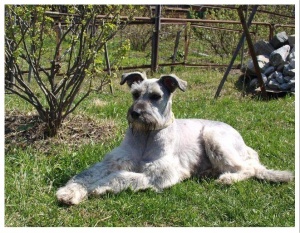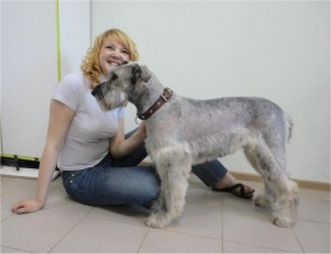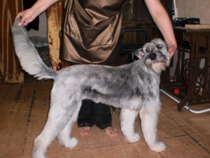 Стрижка выявила в Фанте все великолепие ее экстерьера, кто-то видит в ней что-то от миттеля, кто-то от ризена. Под стать внешности и ее характер, она быстро обучается, у нее легкий характер, она быстро нашла общий язык с хозяйской собакой.