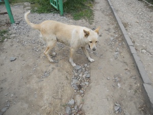 Вот еще есть подходящая. Белка, 6 лет. Стерилизую за свой счет, но возможно она уже стерилизованная (скоро это узнаю). На фото она кажется больше, чем есть на самом деле. Вообще она ниже колена ростом, сантимов 35-40. К посторонним недоверчивая, хорошо охраняет территорию - гавкает на чужих. Белке очень нужен дом!Нужен совет форумчан. Белка живет в стайке из 4 собак, все суки, все меж собой родственники. Две из них (Белка и ее дочь) ручные, их можно поймать и пристроить. Две диковатые. Собак там постоянно травят жильцы, именно тех домов возле которых живут собаки. Уже довольно много собак поотравили, приимущественно кобелей, которые прибиваются и живут с этими суками. На моих глазах умирала вторая дочь Белки, которая продержалась тоже долго. Я удивляюсь как еще эта четверка держится!
