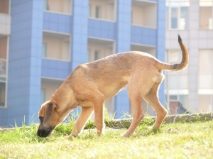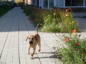Вот ведь точно у неё есть охотничьи крови! (и лапу поднимает переднюю, как в стойке, и голубей с воробушками гоняет отчаянно, и теперь уже плавает!)