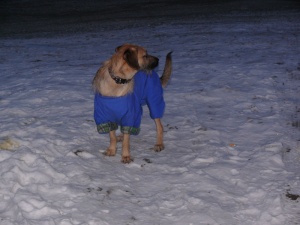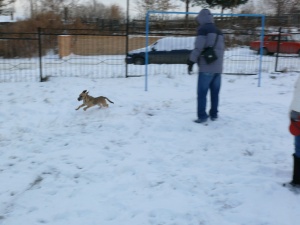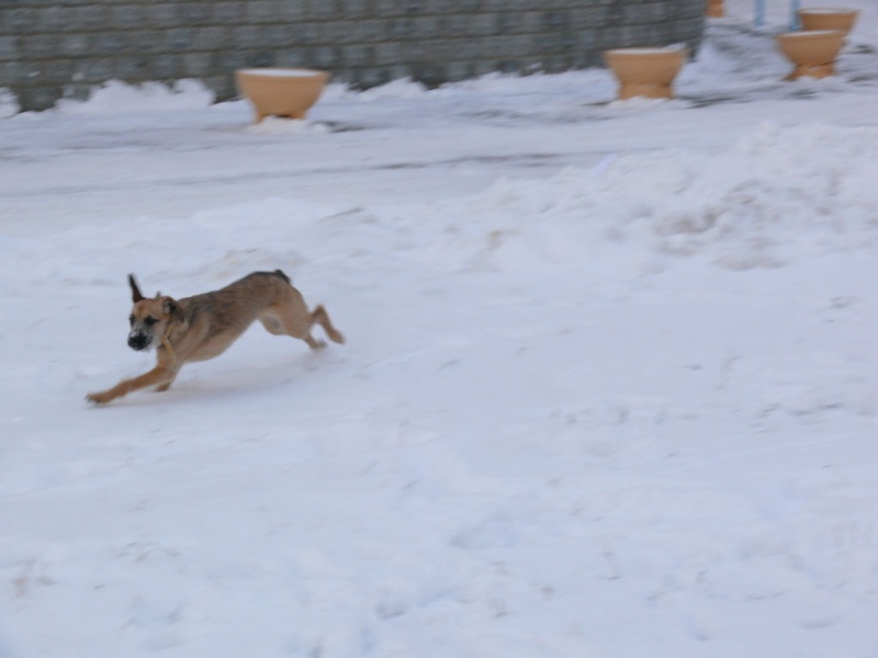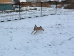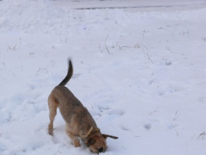 Одри очень любит снежок, очень ему радуется, на прогулке бегает, прыгает, зарывается в него, ныряет носом!