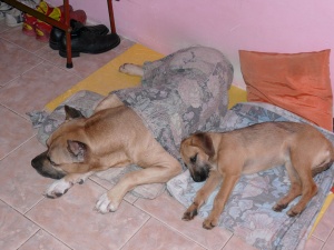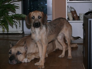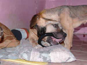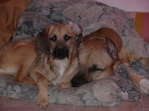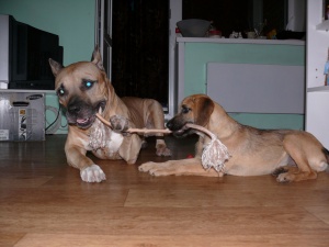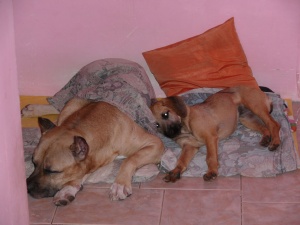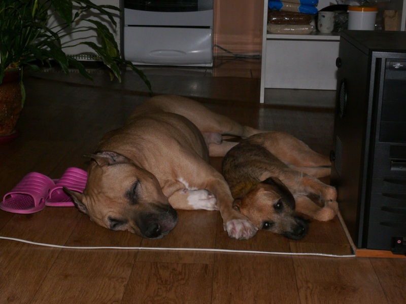 Девонька активная, играет вечно в игрушки моей собаньки и с ним тоже. И спят уже вместе.